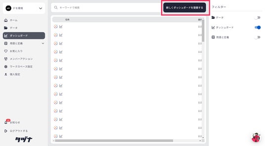 ダッシュボードメニューから新規ダッシュボードを登録するをクリックします。