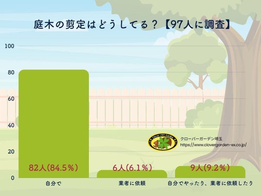 庭木の剪定に関する最近の調査結果は、興味深い傾向を示しています。この調査では97人の参加者に対して、彼らが庭木の剪定をどのように行っているかを尋ねました。