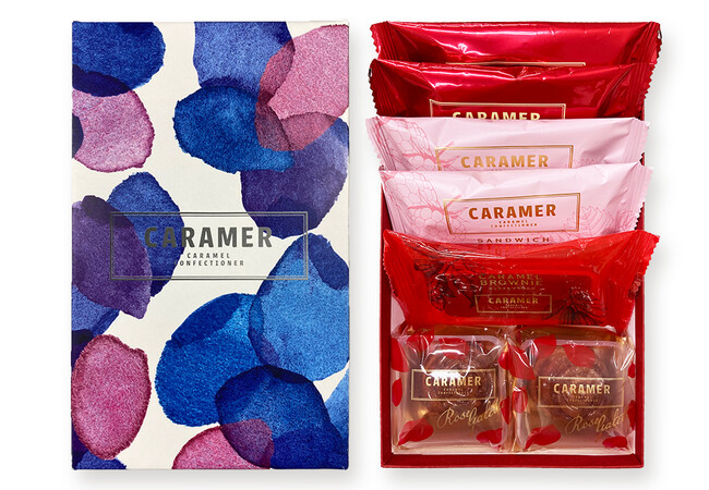 季節限定の「キャラマーサンド ベリーキャラメル」は3種のベリーの洗練された酸味と甘味、フロランタンの華やかで香ばしい香りの調和を感じていただける一品。「ローズガレット」はバターの芳醇な香りを引き出したガレット生地に胡桃を混ぜ合わせ、華やかなバラの形に焼き上げました。そして「キャラメルブラウニー」は、なめらかなくちどけと、しっとりと濃厚な味わいの正統派ブラウニーに、キャラメルクリームを重ね、オリジナルロゴが刻まれたハイカカオチョコレートプレートをのせた大人スイーツ。それぞれ違ったキャラメルを堪能いただけるギフトボックスです。