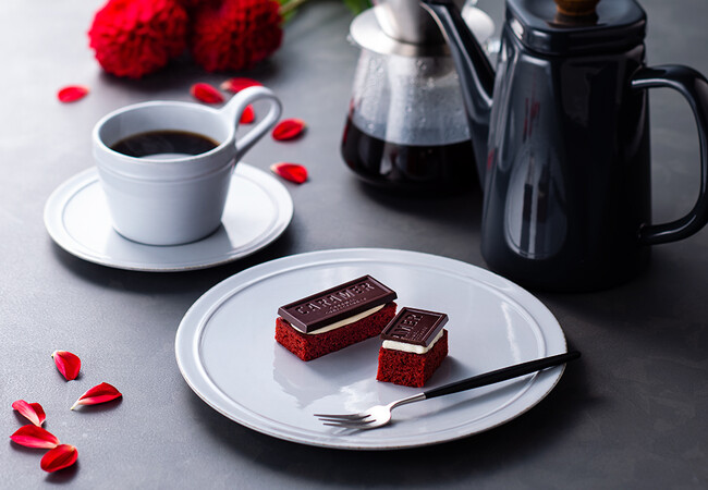 アメリカで親しまれている定番スイーツ「レッドベルベットケーキ」をCARAMERスタイルにアレンジした「レッドベルベットブラウニー」。