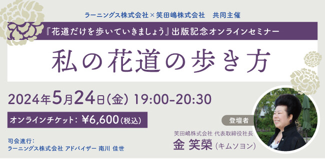 ラーニングス株式会社(本社:東京都渋谷区 代表取締役:梶田洋平)は、5月24日(金)に有料オンラインセミナー「私の花道の歩き方」を開催します。