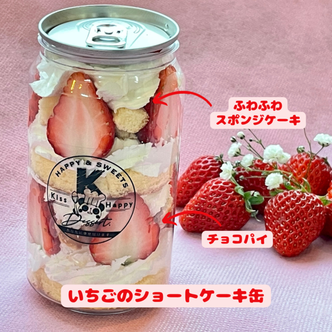 ていねいに盛り付けられて、見た目もかわいい缶に入ったショートケーキ。