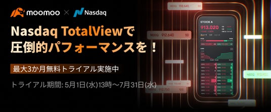 今回の提携を記念して、moomoo はプレミアム・データソリューション「Nasdaq TotalView(R)」を3ヶ月無料でお試しいただけるキャンペーンを実施します。moomooとNasdaq は、Nasdaq TotalView(R)によって、個人投資家の分析や取引が向上することを願っています。