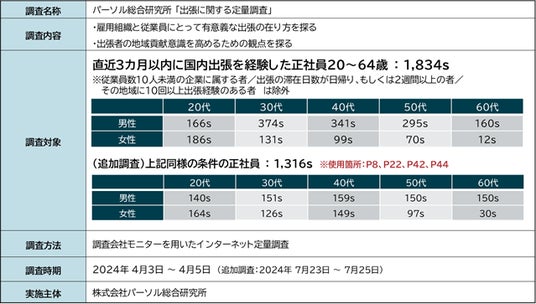 株式会社パーソル総合研究所(本社:東京都港区、代表取締役社長:萱野博行)は、「出張に関する定量調査」の結果を発表いたします。