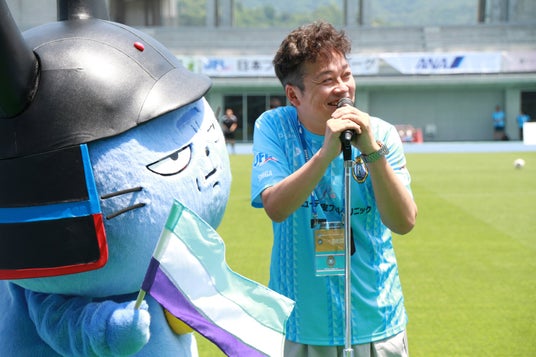 彦根市長 和田裕行 様によるご挨拶。毎試合熱心に応援してくださる姿は、すっかりレイラックではお馴染みとなった。