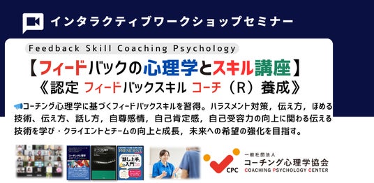 一般社団法人 コーチング心理学協会(本部:東京都港区)が主催する、2024年9月28-29日(土・日)9:00~ 17:30(2日間・両日)オンライン・ワークショップにて「コーチング心理学」や「ポジティブ心理学」「教育心理学」などに基づいたパワハラ対策,ほめる技術・伝え方の技術に関わる【フィードバックスキルコーチング基本講座】を開催いたします。オンラインでの開催のため,国内・海外など,どこからでも参加が可能です。