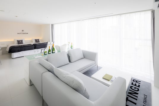 11 のメゾンは、「ボランジェ」「シャルル・エドシック」「レア・シャンパーニュ」「テタンジェ」「ジョセフ・ペリエ」「ニコラ・フィアット」「ラリエ」「ジャン・ヴェッセル」「テルモン」「キュペルリー」「ドゥモアゼル」。11 室ある客室全てをメゾンと共に造り上げており、世界的建築家・小川晋一氏が手掛けたミニマルで洗礼されたデザインの客室では、各メゾンの歴史や想い、世界観、シャンパーニュ文化を体感いただけます。鮨とシャンパーニュのマリアージュをお楽しみいただける、カウンター10 席の鮨レストラン「AWA SUSHI」を併設。