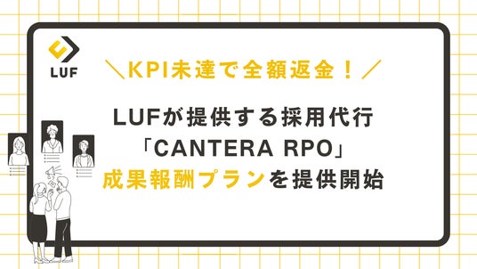 LUF株式会社(本社:東京都港区、代表取締役社長:堀尾 司)が運営する、LUFが提供する採用代行「CANTERA RPO」で成果報酬プランの提供を開始したことをお知らせします。