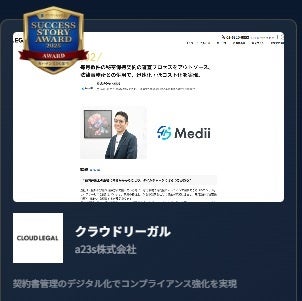 企業法務アウトソーシングサービスALSP(代替法務サービスプロバイダー)の国内パイオニアで、バーチャル法律事務所「クラウドリーガル」(URL:https://www.cloudlegal.ai/)を提供している、a23s株式会社(所在地:東京都中央区、代表取締役、弁護士「日本・米国NY州」 崎地康文、以下a23s)は、この度『デジタル化の窓口』を運営する株式会社クリエイティブバンク(本社:東京都千代田区)が発表した「SUCCESS STORY AWARD 2025 byデジタル化の窓口」のガバナンスDX部門でクラウドリーガルの導入事例がAWARDに受賞したことをお知らせします。