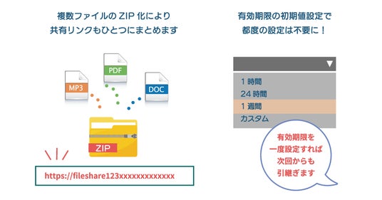 <複数ファイルのZIP化とダウンロード有効期限の初期値設定>