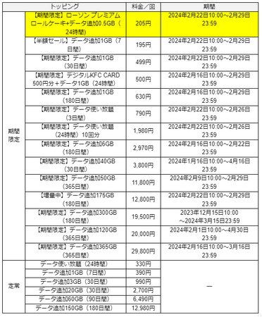 (参考)提供中のデータトッピング一覧(2024年2月22日時点)