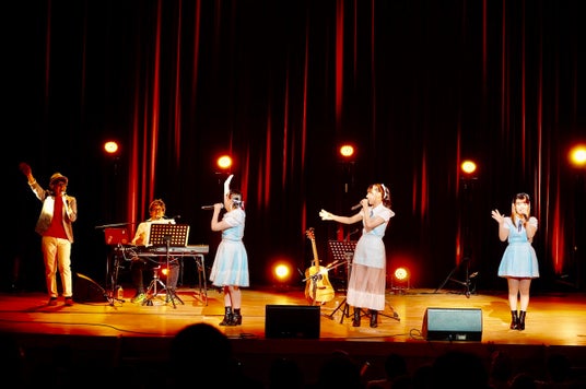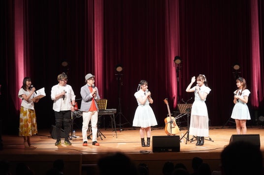 本日7月28日(日)、瀬戸内7県を拠点に活動するSTU48の池田裕楽、兵頭 葵、峯吉愛梨沙が愛媛県・愛南町御荘会文化センターで開催された鶴久政治 60 歳のバースデイを記念して開催されたプレミアムアコースティックライブ「鶴久政治 60th Birthday year Anniversary LIVE」にスぺシャルゲストとして出演し、 鶴久政治氏 作曲による STU48 8th シングル『花は誰のもの?』10th シングル『君は何を後悔するのか?』を歌唱した。スペシャルゲストとして出演した 3 人は、 60 歳還暦、チェッカーズ時代から現在まで数々の名曲を紡ぎ続けデビュー40 周年を迎えた鶴久さんを祝福し花束を持ってステージに登壇。今回の会場であ る愛南町も今年の 10 月で南宇和郡の 5 町村が合併し 20 周年を迎えるということで愛南町の特産品をかけた愛南町にまつわるクイズなどで楽しみ盛り上が った後は、鶴久さん作詞による 2022 年 4 月にリリースした 8th シングル平和を願うメッセージソング『花は誰のもの?』、2023 年 11 月にリリースした 10th シン グル『君は何を後悔するのか?』を歌唱。『花は誰のもの』は 6 月に発売された 1st アルバム『懐かしい明日』に合唱 Ver. STU48 feat. 島谷ひとみ が収載され ており、7月24日付けの USEN リクエストで 1 位を獲得するなど、長く愛される楽曲となっている。『花は誰のもの?』では鶴久さんも一緒にハモリを入れるな どしスペシャルコラボとなった。歌唱後に感想を聞かれた池田は「作曲していただいた方の前で歌唱させていただき緊張より何より、鶴久さんのイメージでちゃ んと歌えているのか心配でバクバクです。」兵頭は「作曲していただいた方とのコラボが初でして、鶴久さんが『花は誰のもの?』という STU48 が注目される楽 曲を作ってくださったからこそ、私たちがここに立てていて、今日はゲストとして呼んでいただけてすごく嬉しいです。」峯吉は「『花は誰のもの?』のオリジナル メンバーとしてこの曲を歌い続けてきて、先日発表の USEN リクエストで 1 位をいただきました。長く愛されているこの曲のおかげで知名度もあがり感謝の気持 ちでいっぱいです。」とコメント。トークでは編曲を担当してくださった Hiroya.T さんも加わり、曲ができるまでの裏話をするなどここでしか聞けない話などで盛り 上がった。鶴久さんとの掛け合いですっかり仲良くなった池田は「これからも STU48 の公式おじいちゃんとして宜しくお願いします。」とコメントするなど客席を 笑いで沸かせました。今回の鶴久政治さんとのコラボはまさに音楽が結んでくれたもの、これからも大切に歌い続けていきたい楽曲だと改めて実感し、鶴久さ んの 60 歳を祝うとともに音楽に感謝する1日となった。
