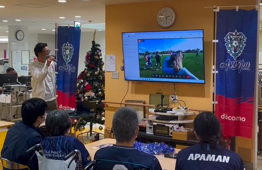 福岡和白病院では、40名の方にご参加いただきました。得点を入れる瞬間などMiRZAから届く臨場感があふれる映像に、まるで自分たちがプレーをしているような感覚を体験いただくことが出来ました。映像を見て「映像がスムーズに送られていてすごい!」「一緒にサッカーをしているような感覚」と離れた場所からでもサッカーを楽しんでいただくことができました。