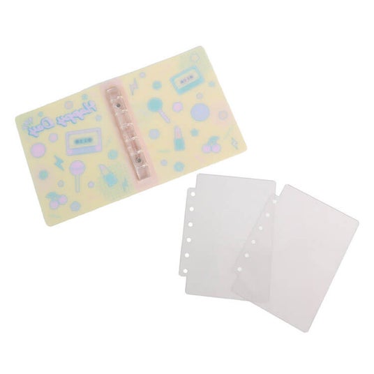 『シール帳(6穴タイプ)』は、シールを貼ってはがせる高透明なPETリフィル2枚がセットになったPP製のシール帳です。全面フルカラー印刷ができます。人気のシール帳をオリジナルで作製しませんか?