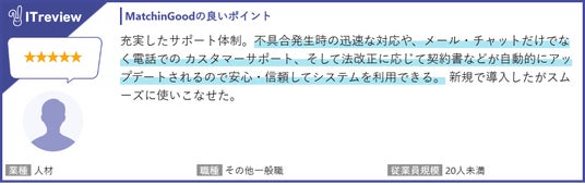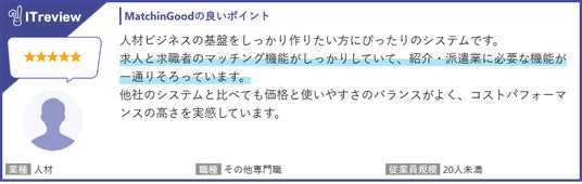 ▼「MatchinGood」のITreviewページ(顧客レビューはこちら)