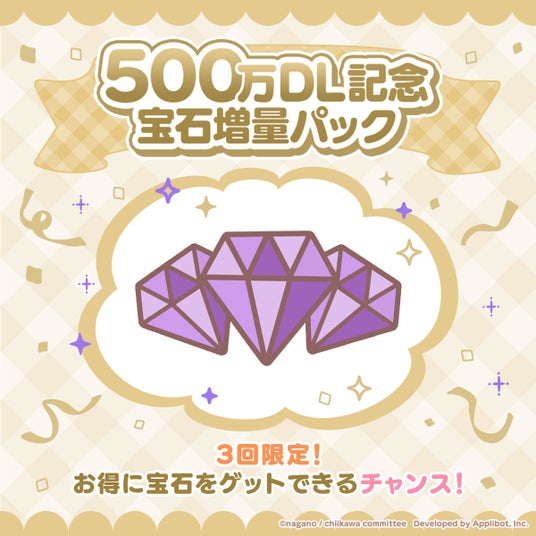 「宝石(有償)」を期間限定でお得にご購入いただけるパックを販売します。販売内容の詳細については、アプリ内のショップ画面よりご確認ください。