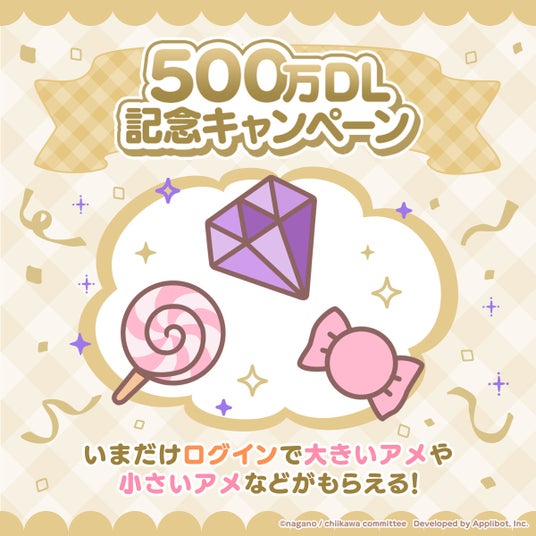 株式会社アプリボット(本社:東京都渋谷区、代表取締役社長:浮田光樹)が企画・制作・開発・運営を行う、「ちいかわ」初のスマホアプリ『ちいかわぽけっと』(以下、『ちいぽけ』)は、累計500万ダウンロードを突破したことをお知らせいたします。これを記念して、2026年4月24日(金)よりアプリ内での豪華キャンペーンをに加え、『ちいぽけ』公式Xにおいても記念キャンペーンも実施いたします。