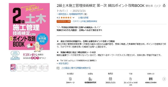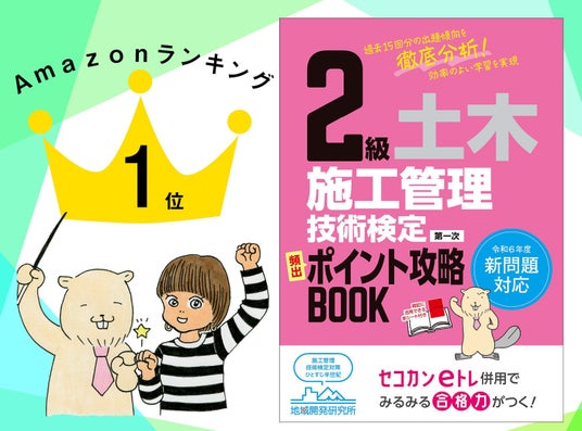 過去15回分の出題内容を徹底分析し、合格に必要なポイントに絞った解説により、効率のよい学習を実現する本書が、Amazonランキングの「土木施工管理技術検定」部門で1位を獲得いたしました