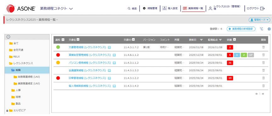 法令と届出事項・手順書・業務規程・社内文書の紐づけ管理