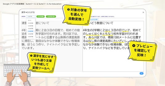 Suiteツール新機能「漢字→ひらがな」:作成した文章を対象学年向けに一括変換 - 漢字をひらがなへ変換