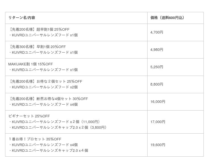 サイト https://www.makuake.com/project/universal-lens-hood/