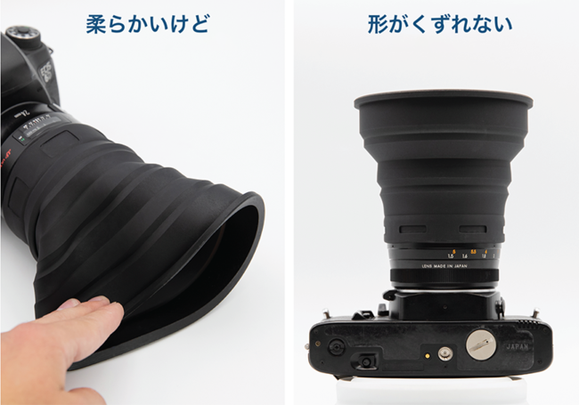 広角レンズなどによっては「ケラレ(四隅にフードの影が写ってしまう現象)」が発生することがありますが、その場合は折りたたんで利用いただけます。