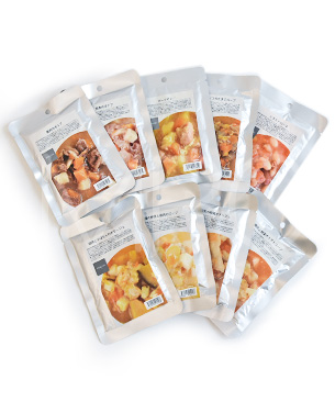 鶏肉・鹿肉・馬肉・豚肉など9種類のレトルトをセレクト