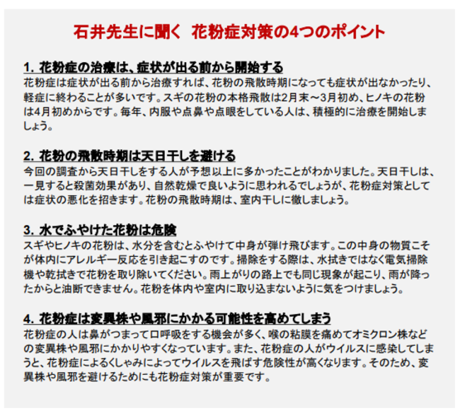 「花粉症対策知識テスト」に関して、石井先生に解説していただきました。