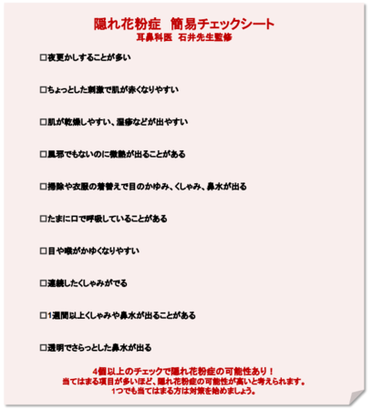 石井先生監修「隠れ花粉症簡易チェックシート」