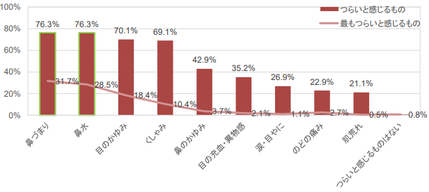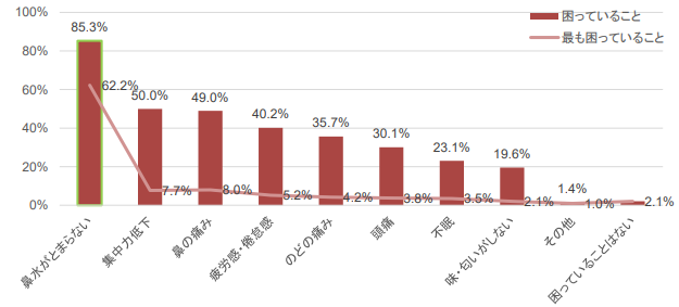 花粉症で最もつらい症状は「鼻づまり」「鼻水」