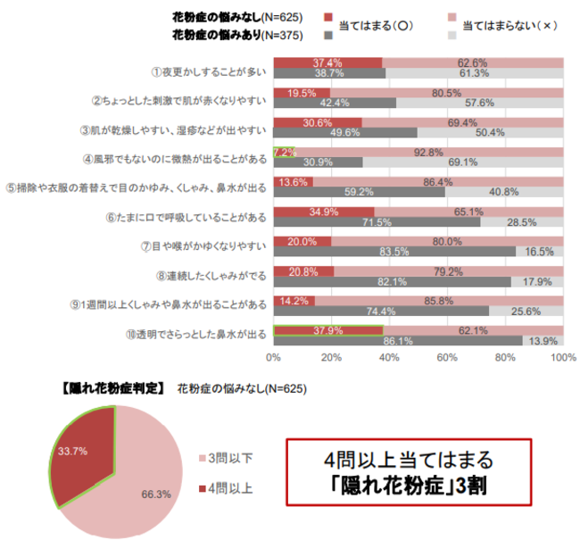 「隠れ花粉症簡易チェックシート」花粉症の自覚がない「隠れ花粉症」は3割