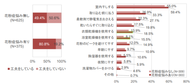 Q20.あなたは、洗濯物の花粉対策として何らかの工夫を行っていますか。(単一回答 N=1,000) (左図)