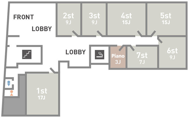 17帖のハイスペックスタジオからリーズナブルに使える7帖のミニマムスタジオまで利用用途に合わせて全4種、計7部屋のバンドスタジオとアップライトピアノ設置のピアノスタジオを1部屋完備しております。