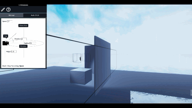 本機能はSTYLY WebEditor上でVR空間の動画撮影を行うことができる機能です。カメラ機能にはマニュアルモードと自動モードの2種類があります。