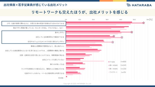 また、フル出社している若手従業員も「出社」にある程度のメリットを感じているようです。