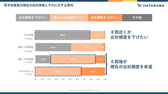 ・若手従業員は約6割が「フル出社」。しかし、その【8割】が出社頻度を下げたいと回答