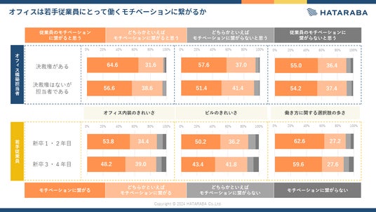オフィス移転コンサルティング、オフィス仲介サービスや物件検索サイト【HATARABAオフィス】など、はたらく場所の最適化=HATARABA(ハタラバ)を展開する株式会社HATARABA(本社:東京都渋谷区、代表取締役:森村泰明)は、2024年5月にオフィス構築担当者と、若手従業員1,000名を対象に「働き方に関する意識調査」を実施しました。