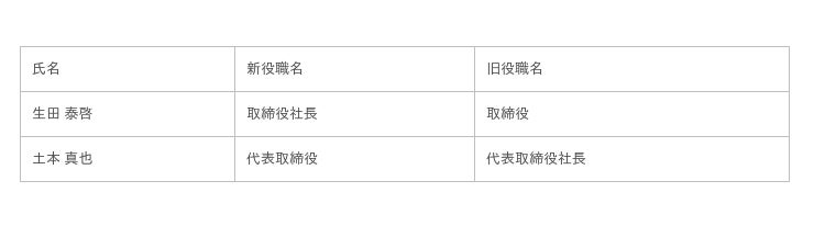 生田は新たに取締役社長として就任し、サービス品質のさらなる向上、それを実現するための運営体制や組織力の強化に尽力します。かねてより代表取締役社長を務めている土本は代表取締役として、店舗拡大や新規事業創設に尽力し、企業価値向上とさらなる成長を目指します。