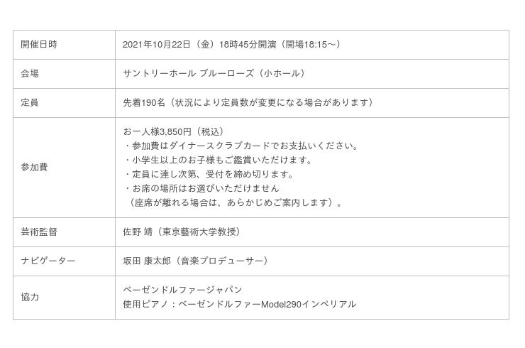 ダイナースクラブ アーティストサポートプログラムコンサートが9周年目を迎えました。昨年は、新型コロナウィルス感染症の影響で開催できませんでしたが、ダイナースクラブ60周年の節目の年に、このプログラムを再開催できることを嬉しく思います。