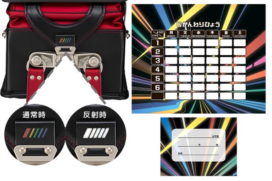 さらに2027年度モデルより、色とりどりなシリーズを象徴するデザインアクセントが追加!ランドセルの底面には、レインボーカラーの反射押しに加え、付属の時間割表・お名前カードも新たなデザインに変更され、よりカラフルでかっこいいシリーズとなりました。