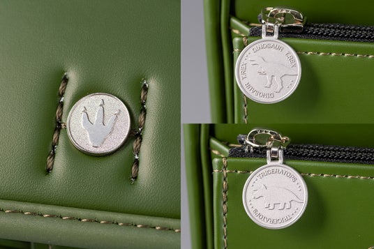 鋲や引き手、内装のデザインまで至るところに恐竜を散りばめながらも、飽きのこないデザインに仕立てています。