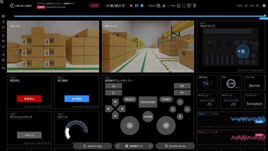- ロボットやモビリティの自動化が進むにつれて、万が一の際の遠隔サポートや遠隔復旧を目的とした遠隔操縦機能の実現が求められています。本リリースでは可視化Webダッシュボード Visual M2M Data Visualizer に遠隔操縦用インターフェースを追加しました。これにより、専用アプリケーションを開発することなく、迅速に遠隔操縦機能を利用できるようになりました。