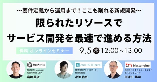 株式会社ラクスライトクラウド(本社:東京都渋谷区、代表取締役:浅野史彦)が提供するメール配信システム「ブラストエンジン」は、2024年9月5日(木)12時より、サービス開発担当の方を対象に「~要件定義から運用まで!ここも削れる新規開発~ 限られたリソースでサービス開発を最速で進める方法」無料オンラインセミナーを開催いたします。