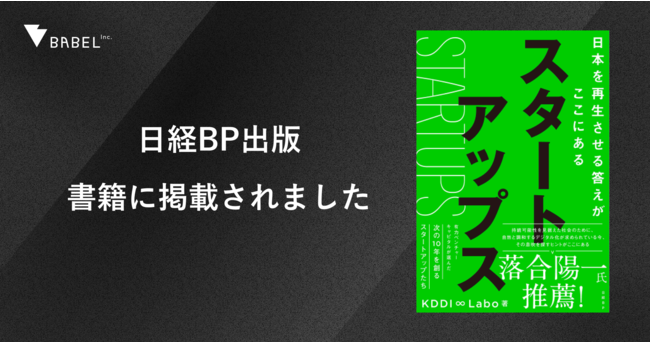 株式会社バベル(本社:東京都渋谷区、代表取締役:杉山大幹、以下バベル)は、日経BPが出版した書籍「スタートアップス 日本を再生させる答えがここにある」にベンチャーキャピタルが推薦する、有望なESG関連スタートアップとして掲載されました。