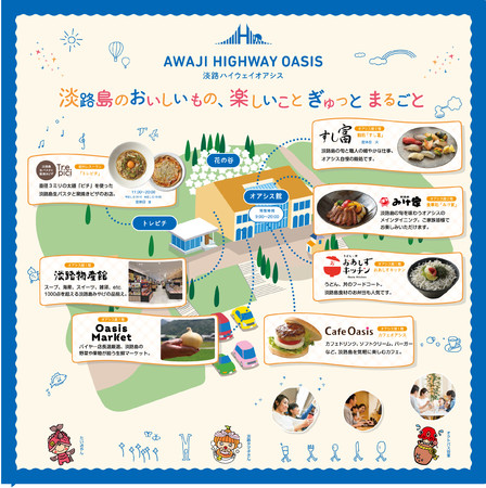 兵庫県立淡路島公園内に位置し、島内の玄関口となる「淡路ハイウェイオアシス」。