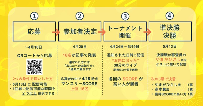 ・準決勝と決勝が行われる5月13日(土)に、Radiotalk本社から配信する特設ライブに参加可能なこと(オンラインでも可)。