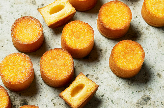 天面をフレンチ鉄板で押さえて焼きあげることで表面にサクッとした歯ざわりを与え、ミルクジャムがふんわりと膨らみ、生地の真ん中にできる空洞が生み出す食感の軽さも特徴のひとつです。