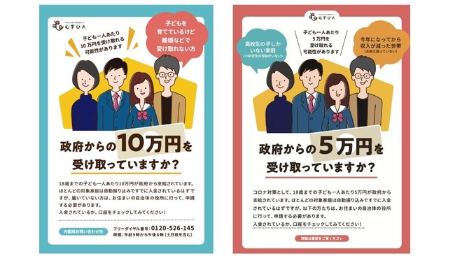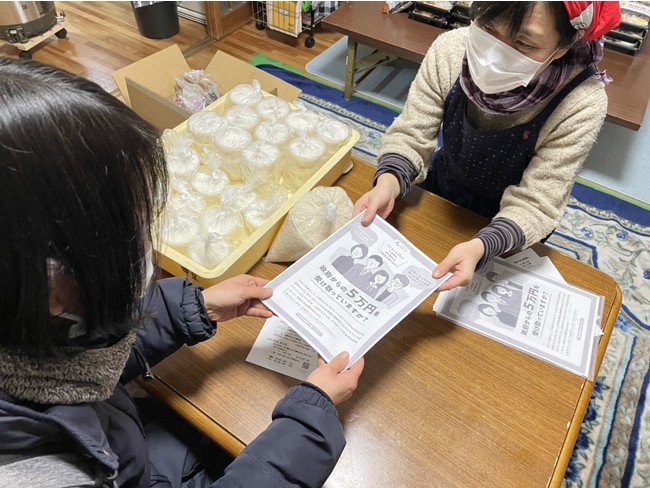 子育て給付金を受け取れていない方々への情報発信や相談、また役所での申請に同行いただくなどのご協力をいただいた「こども食堂」に対して、サポートに伴う費用(チラシの印刷や申請の同行に必要な交通費等)に充当いただけるよう、約50のこども食堂に一律3万円の協力金を支給しました。