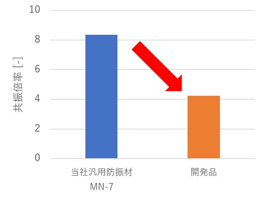 高減衰・高弾性αGEL共振応答倍率従来比で50%減を確認。