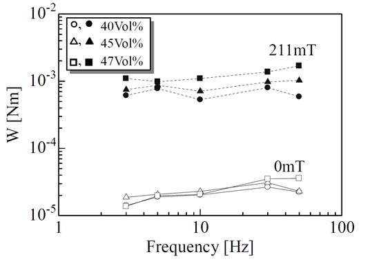 1.外部磁場でゲルの剛性と減衰が大きく変化